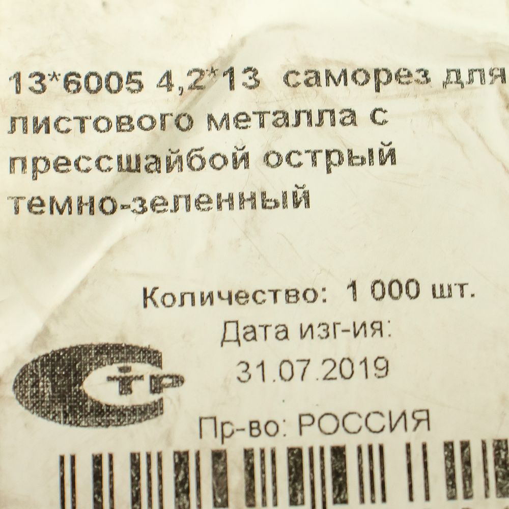 —Саморез с прессшайбой 4,2*13, ОСТРЫЙ темно-зеленый 6005 (1000) -ZZZ-