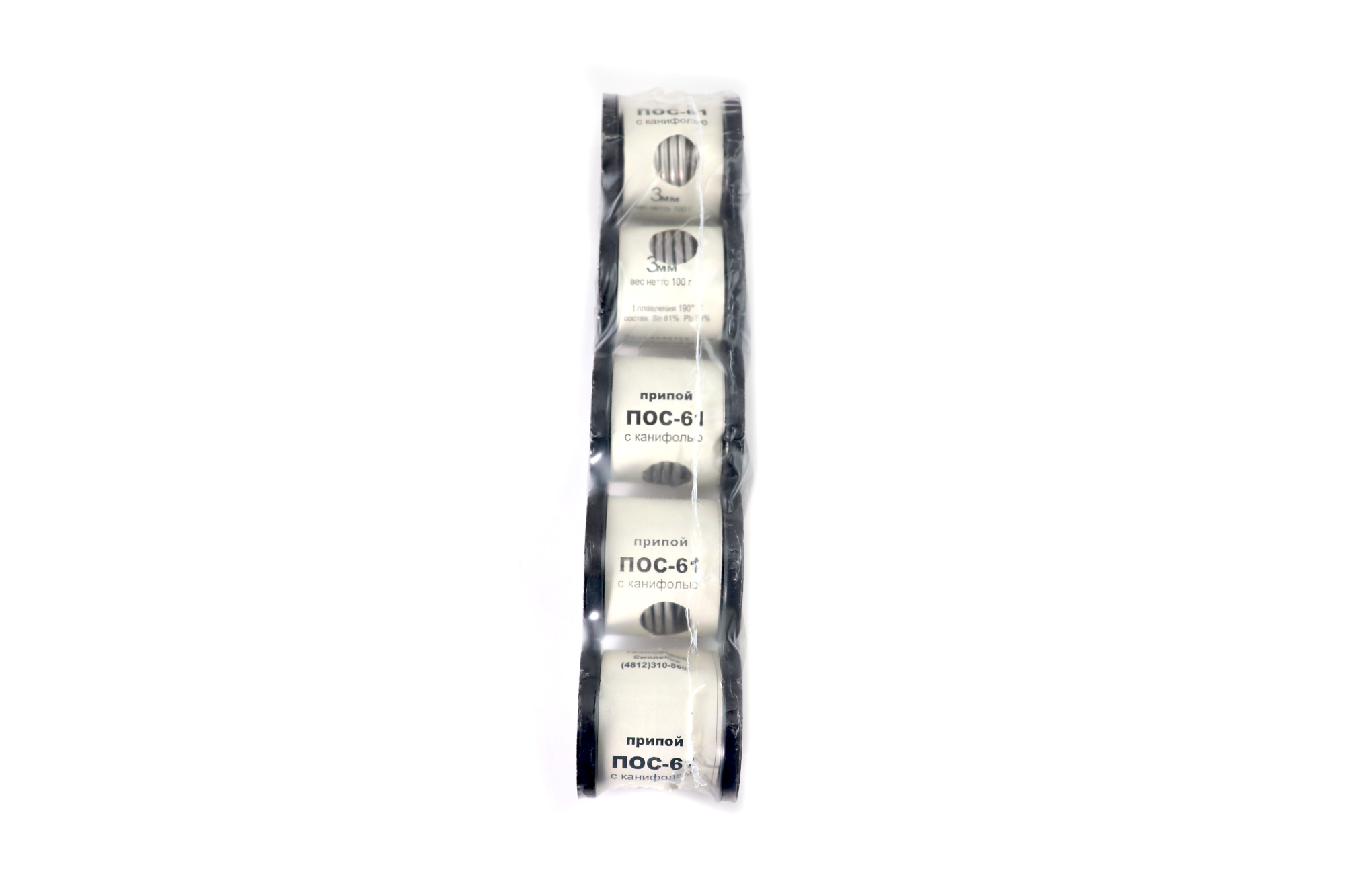 —Припой ПОС-61 НА КАТУШКЕ с канифолью 100 гр диам. 3мм /10