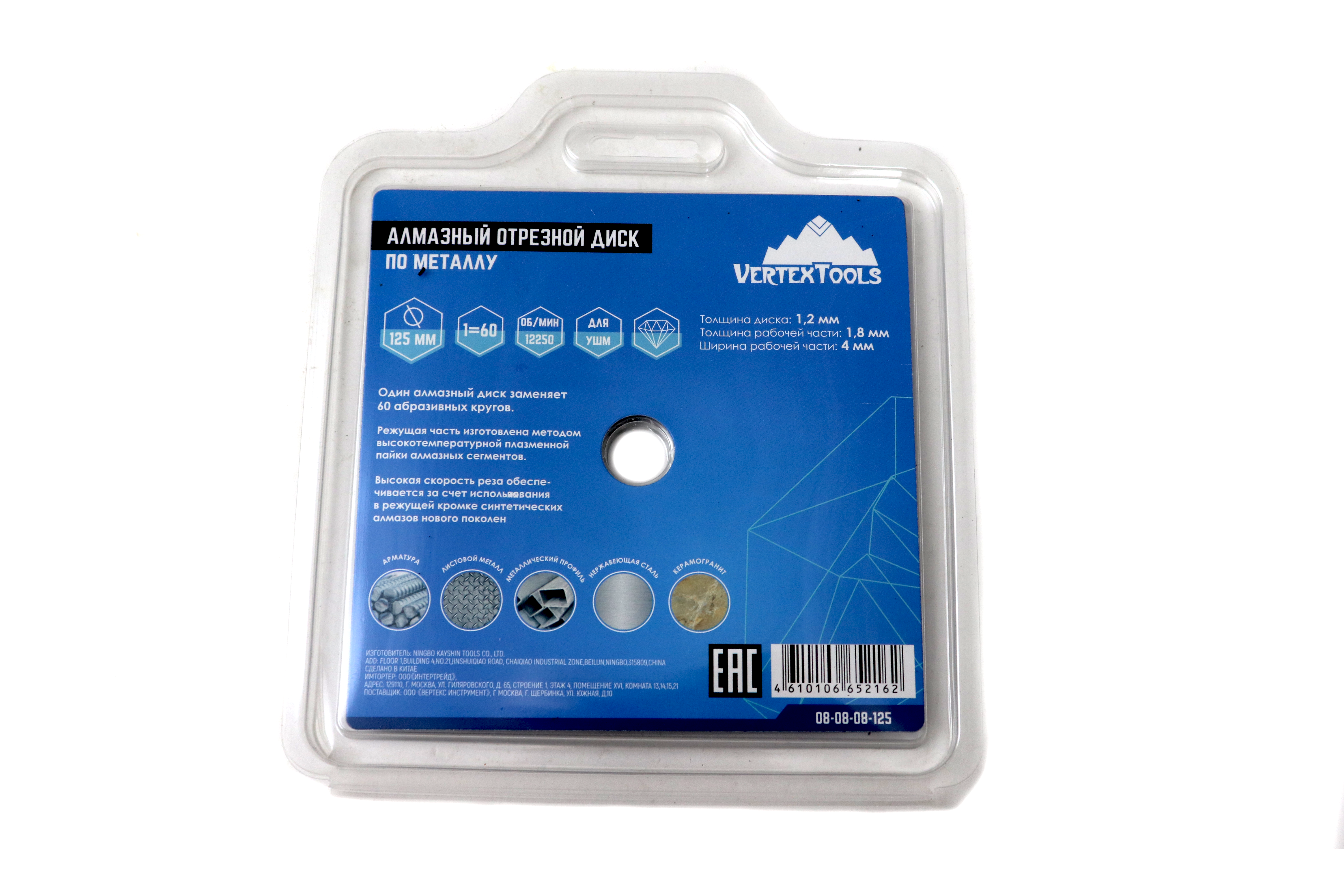 Изображение диск алмазный vertextools (вертекс) по металлу 125мм