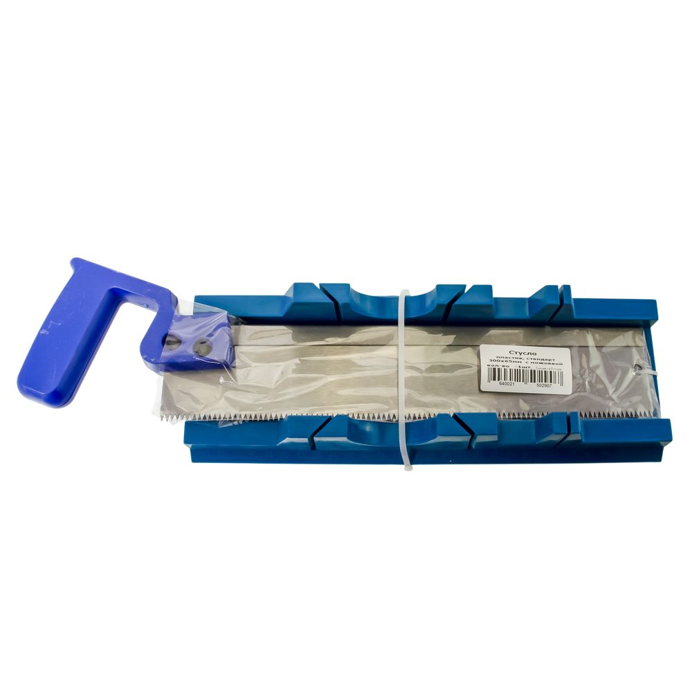 Пластмассовое стусло с пилой 300 х 65 мм,подойдет для фиксации и распила заготовки под углом 45 и 90 °. Стусло изготовлено из прочной пластмассы. Пила оснащена стальным полотном с шагом зубьев на дюйм - 9, и пистолетной рукояткой, которая крепится к полотну винтами.