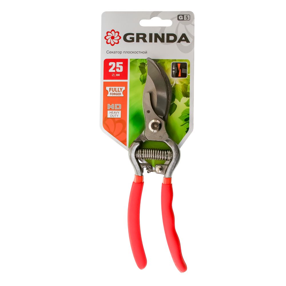 Секатор GRINDA плоскостной рез до 25 мм, цельнокованый с эргономич. рукоятками (210мм) G-5 (12/48)